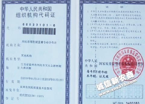 企业名称:兴化市得胜湖蛋禽专业合作社